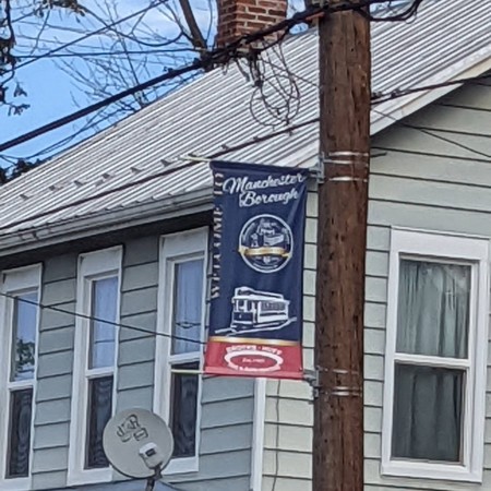 Goodyear (Brooks/Huff Tire) is open 8am-6pm, Mon-Sat. The trail goes through residential areas and the business districts of Manchester and Mt Wolf.