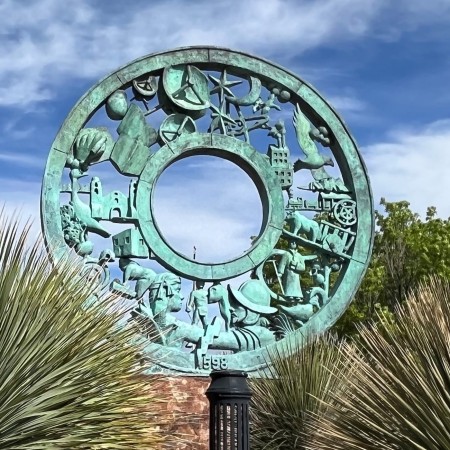 Historic Socorro founded in 1598 with many old buildings, church, museums, 2 plaza areas, and New Mexico Tech (School of Mining & Technology) campus.